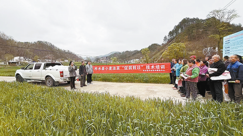 本報(bào)訊 (通訊員 郭 艷 霍國亞)當(dāng)前正值春季小麥田間管理的關(guān)鍵窗口期。4月9日,柞水縣農(nóng)業(yè)技術(shù)服務(wù)中心組織植保與農(nóng)技專業(yè)人員,深入下梁鎮(zhèn)金盆村百畝示范田,開展小麥“促弱轉(zhuǎn)壯”專項(xiàng)技術(shù)培訓(xùn),把農(nóng)技服務(wù)送到農(nóng)戶身邊、送到生產(chǎn)一線。